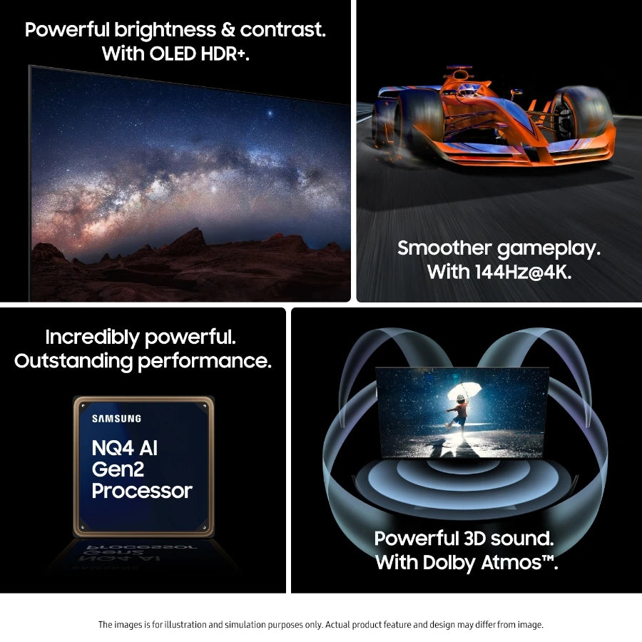 Hvis du spiller på S90F, får du en imponerende flydende og responsiv oplevelse med 4K opløsning og en opdateringshastighed på op til 144Hz. Hurtige bevægelser forbliver skarpe uden forsinkelse eller hakken, og det er en stor fordel i actionspil og racerspil. HDMI 2.1 sikrer den bedst mulige forbindelse til din PlayStation 5, Xbox Series X eller gaming-pc, så du kan udnytte konsollernes fulde ydeevne uden forstyrrelser.
