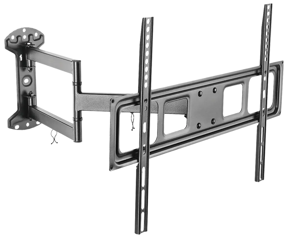 Vægbeslag i stål til LCD-, LED- og Plasma-fladskærme samt curved TV. Med mulighed for at tilte, dreje og nivellere skærmen.