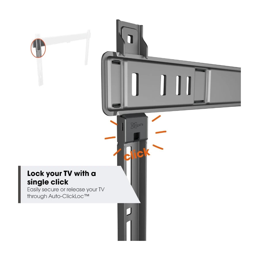 Den innovative Auto-ClickLoc-mekanisme gør det muligt at fastgøre eller frigøre dit tv med et enkelt klik. Denne funktion giver både sikkerhed og bekvemmelighed ved montering eller justering af din skærm.