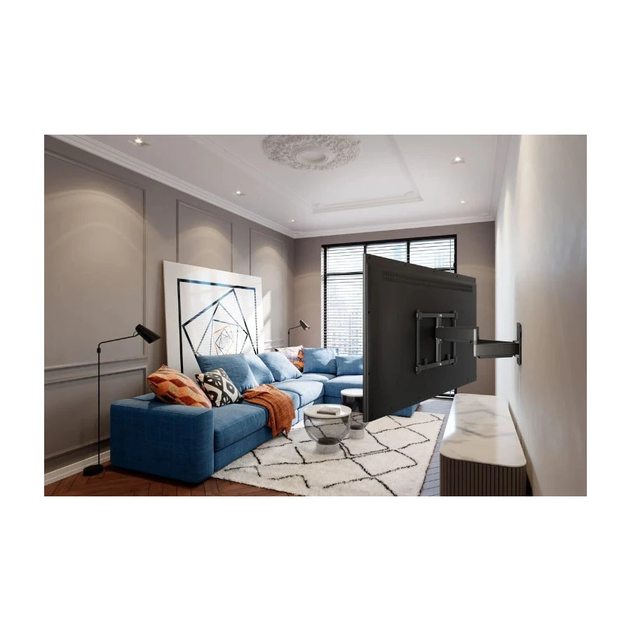 Det drejelige vægbeslag giver dig altid mulighed for at få den bedste betragtningsvinkel til dit TV. Stativet drejer op til 120 grader og kan nå næsten 70 cm fra væggen. Drej TV'et til den ønskede vinkel og placer den længere væk fra eller tættere på væggen, som du vil.